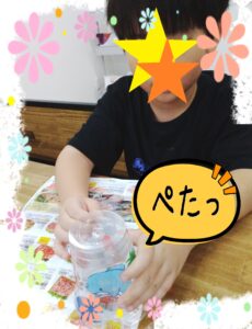 紙が少しずつ薄くなって透けていく様子に「すごーい❗なんで~😯」とみんな興味津々でした☺️