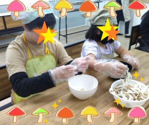 秋の食材と言えばきのこ🍄きのこは野菜と同じく身体の調子を整えてくれる食べ物です☝️手で割くことも出来るため、五感で親しむ事で食への興味関心を高める事をねらいとし、きのこご飯作りにチャレンジしました💪苦手な子どもも多いですが混ぜご飯にし、切り方や味付けを工夫して楽しく、美味しく食べられるようにしてみました😊