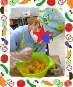 さつまいもに含まれている栄養素の食物繊維でお腹の調子が良くなり、ビタミンCで風邪を引きにくくなる効果があります❣️今回の活動では蒸し器を使用して蒸しましたがご家庭ではオーブンを使用して作ることも出来ます☺️是非、今が美味しいさつまいもを使ってふっくら蒸しパンにチャレンジしてみてくださいね✨
