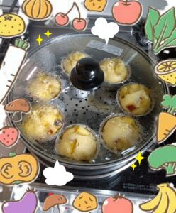 おやつ作りも慣れたものでふっくら美味しい蒸しパンが完成しました❣️
