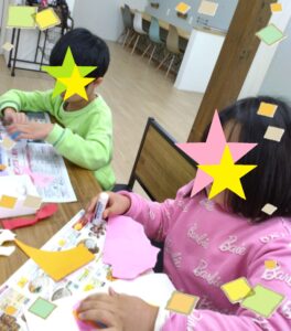 この日は終業式でみんな来所が早かったため、まずは活動の時間までクリスマスパーティーの飾り作りをしました🥰
