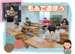 今回は手先の微細運動に取り組もうという事で『毛糸で遊ぼう』の活動をしています😜