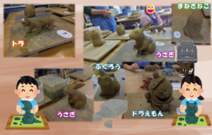 スタッフの方に手伝ってもらいながら、型に粘土を詰めて1つに合わせて、型抜きした後に綺麗に整えていきます(順番に取り組む中、待つのも上手にできました😉)。
